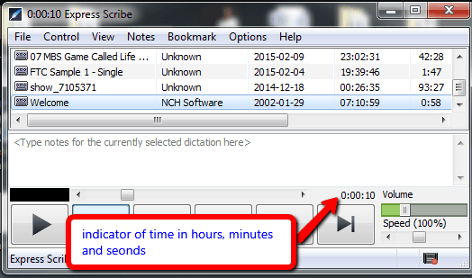 Express Scribe is the best software to use when transcribing files that require timestamps. For those who may not be sure of what those zeros means. The first zero represents time in hours. The second set of zeros represents time in minutes and the last set, which is a 10, represents the time in seconds.